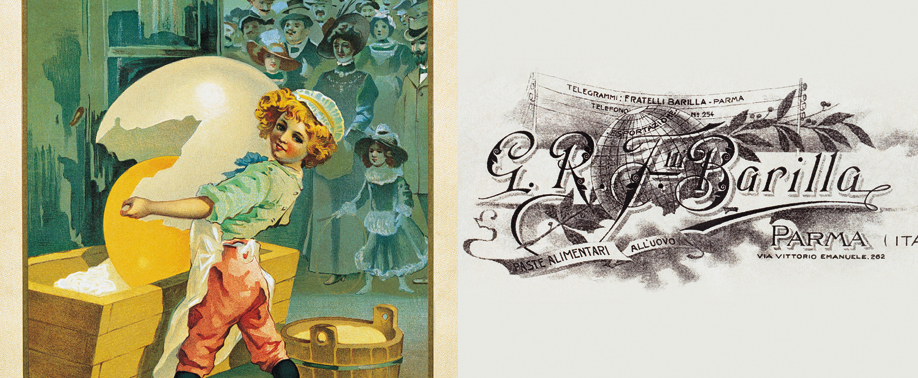 Además, como avanzaba al principio del post, la historia del Gruppo Barilla nos muestra que la imagen corporativa es un ingrediente clave en el éxito de una empresa familiar. En 1910, cuando la empresa tenía tres décadas de vida, Barilla le pidió al escultor Emilio Trombara que diseñara su imagen corporativa, que se registró y posteriormente se plasmó en postales, carteles y esculturas. Poco después, al membrete de la empresa se añadieron nuevos distintivos, que apuntaban el carácter internacional que se quería dar a la compañía.