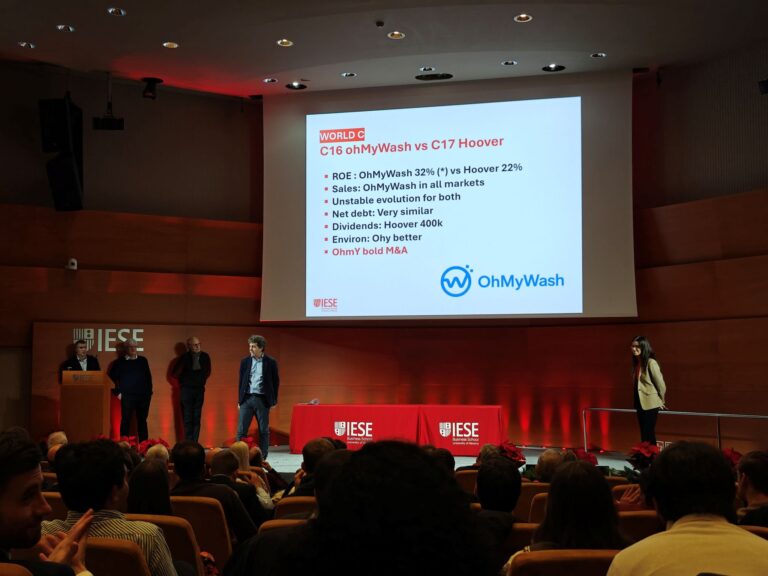 EXSIMとは、仮想の製造会社の舵をMBA生が握る、5日間にわたる集中的なシミュレーションです。チームは6-7人で構成され、CEO、CFO、CMO、COO、CLO、CPO/CSO、コントローラーといった経営幹部の役割を担います。それぞれの期間は4ヶ月を表し、リアルタイムと競争圧力の中で意思決定を下さなければなりません。6つのチームが同じ“世界”で競い合い、市場シェア、株主リターン、利益、ESGスコアなどを勝ち取ります。