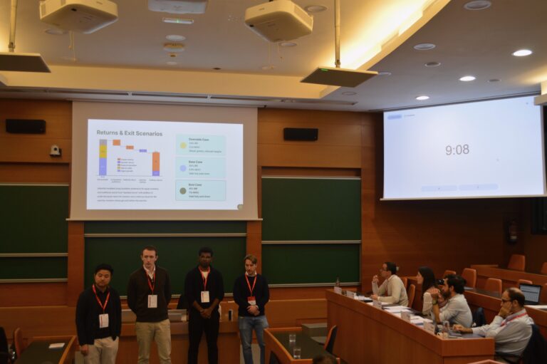 IESE校内ではまず予選ラウンドを開催しました。予想を大きく上回る 12チームの応募 があり、学生の間でサーチファンドへの関心が高まっていることを確信しました。選抜されたIESEチームは、その後 LBS、INSEAD、HEC Paris、IMD、ESADE からのチームと共に競いました。