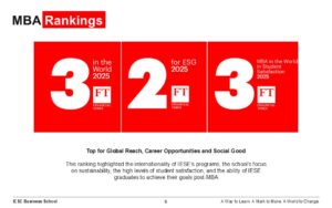 ファイナンシャルタイムズ ランキングにより2025年に世界第3位(欧州第1位)、2024年に世界第5位、2023年に世界第3位にランクインしています。ESG分野で世界第2位、学生の満足度分野で世界第3位です。