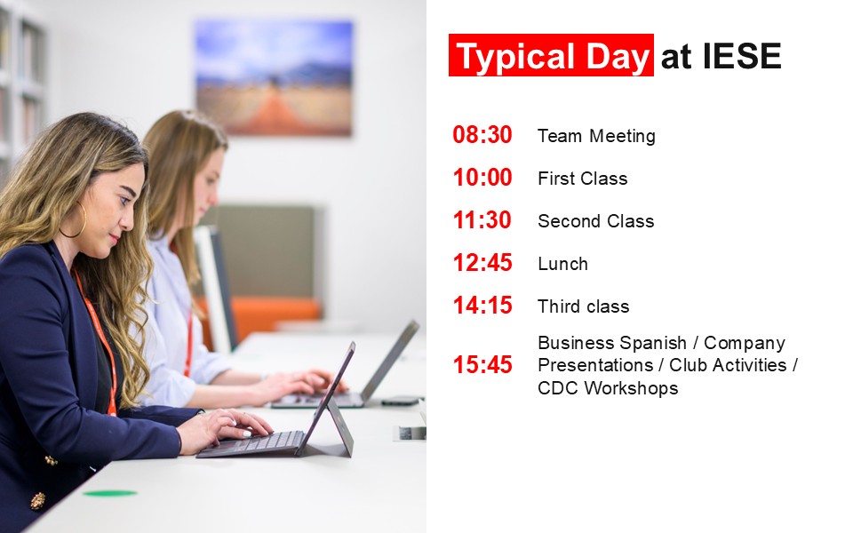 毎朝のチームミーティングに引き続き、75分の授業が3コマあり、任意制のBusiness Spanish Programが週に複数日程開催されます。