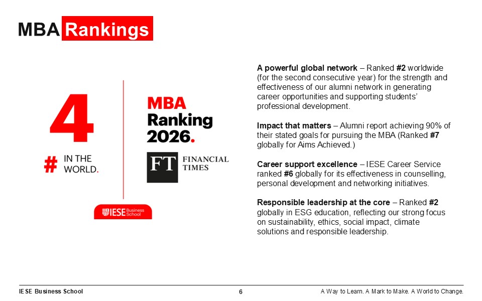 ファイナンシャルタイムズ ランキングにより2026年に世界第4位、2025年に世界第3位、2024年に世界第5位にランクインしています。