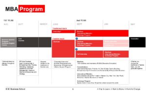 Traditional Trackの場合、1年目と2年目の間の夏季期間に、インターンシップを実施するか、夏の起業体験プログラムであるSummer Entrepreneurship Experienceに参加するか、既存の起業内容を持ち込んで内容を一層洗練するEntrepreneurial Initiative Support Programに参加することになります。Flexible Trackにおいては、このインターンシップが9-12月 and/or 1-4月となり、後者はフルタイムの就業経験を同時期に重ねることで要件を満たせます(従来、インターンシップといえば夏に実施するものという概念があったところに呼応して、Traditional Trackという命名に繋がっています)。