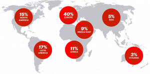 入学前の学生の出身国は30カ国超で、平均年齢は40歳、平均就業年数は10-15年、女性比率は38%です。