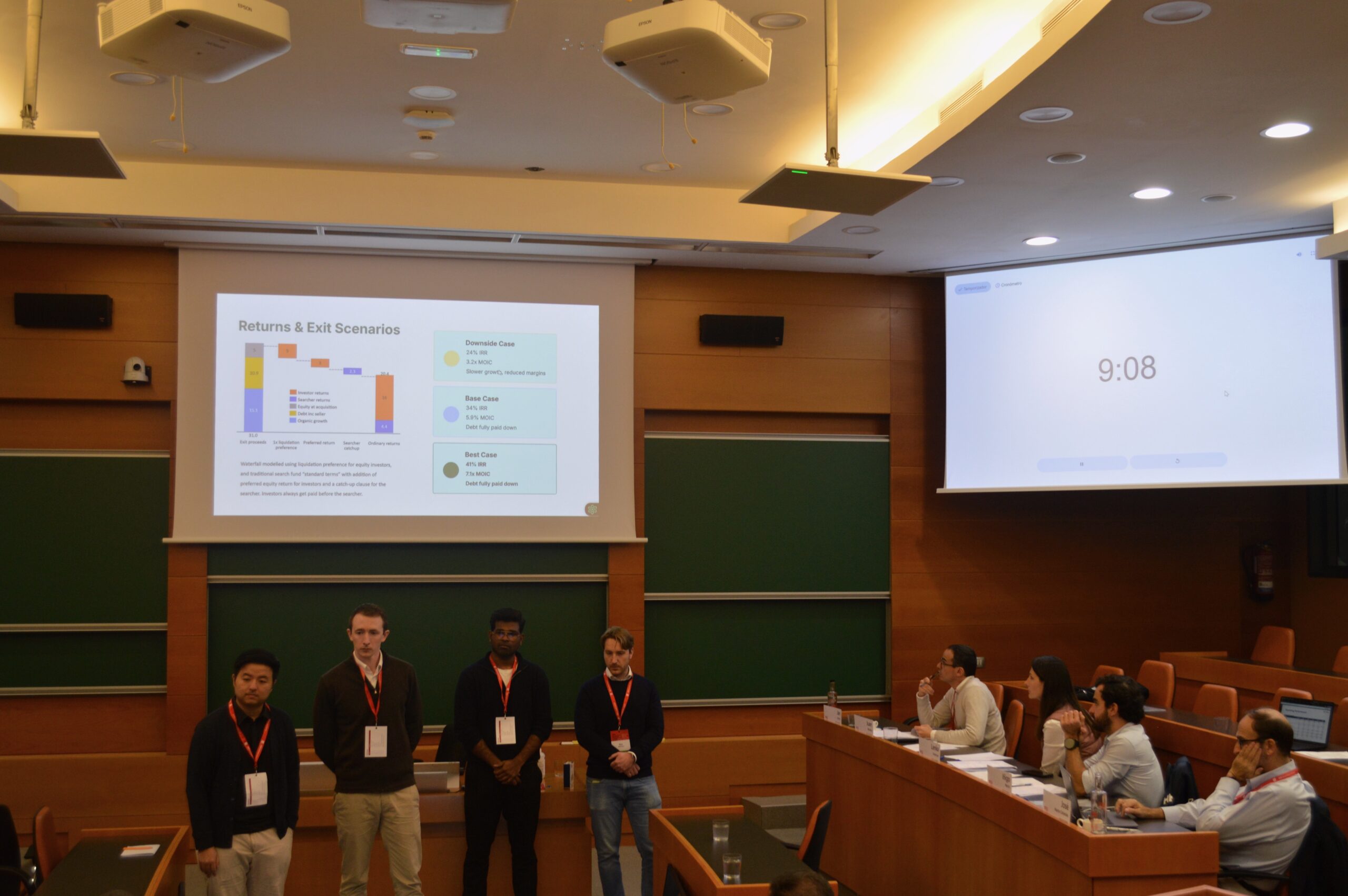 Each team presented its preferred acquisition to a panel of active search fund investors. They were challenged on risk assessment, value creation, financing structure and execution capability.