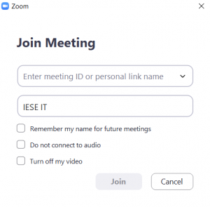 All IESE work rooms are equipped with WebCam and Micro for online meetings. Please select Shure Digital as Microphone for the best audio input experience.